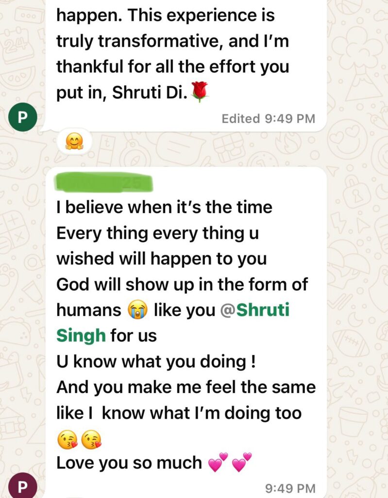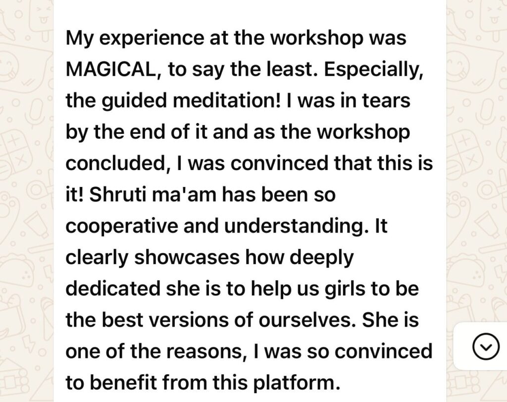 With over 200K followers across social media, Shruti has helped hundreds of women step into their feminine power, attract love without chasing, and create a life filled with joy and abundance.